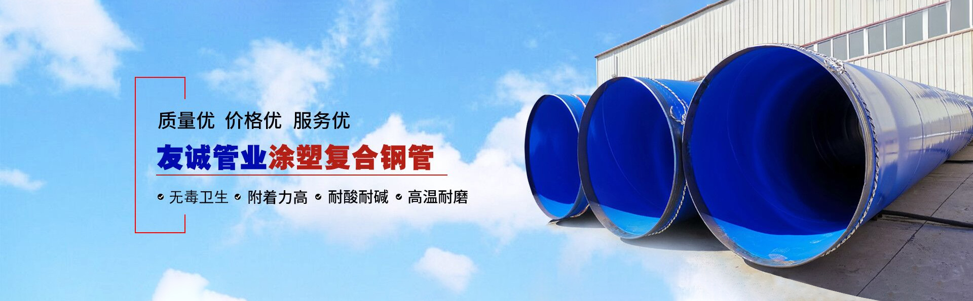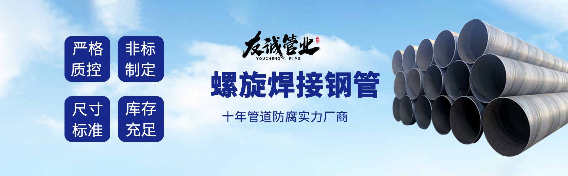 滄州友誠管業(yè)有限公司是一家專業(yè)從事生產(chǎn)防腐涂塑管道及管件于一體的大型企業(yè)。公司注冊(cè)資金8600萬元,位于中國(guó)管道生產(chǎn)基地—河北鹽山縣,近靠京滬高速、榮烏高速、黃石高速30公里,高鐵滄州西站40公里,天津國(guó)際機(jī)場(chǎng)、濟(jì)南遙墻機(jī)場(chǎng)150公里,為客戶來訪及業(yè)務(wù)發(fā)展提供了便利的交通條件。 鋼管系列:螺旋鋼管、無縫鋼管、ERW直縫焊管、JCOE埋弧焊直縫鋼管、熱鍍鋅鋼管。 涂塑系列:內(nèi)外涂塑鋼管、涂塑復(fù)合鋼…… 了解更多